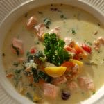 - Torsk- og laksesuppe med rekerTorsk- og laksesuppe med reker smaker godt som forrett og lunsjrett eller som hovedrett, med litt godt brød til. HjemmelagetFortsett å lese «Torsk- og laksesuppe med reker»