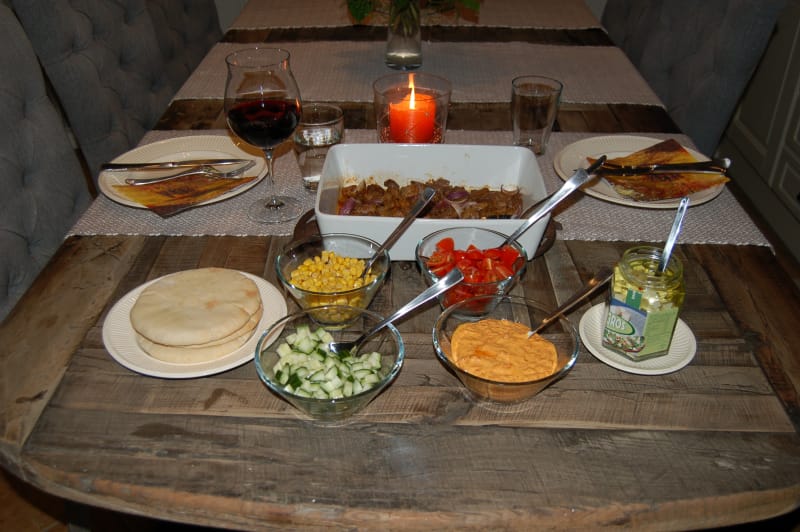 Hjemmelaget kebab i pita er sunnere og bedre og derfor lager jeg kebaben selv. Den store forskjellen fra den du kjøper på gatekjøkken, er at min inneholder rent kjøtt og ikke muk. Denne oppskriften er passe til 4 personer.