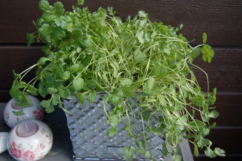 Ved boblebadet har jeg plantet i en gammel sinkbalje.