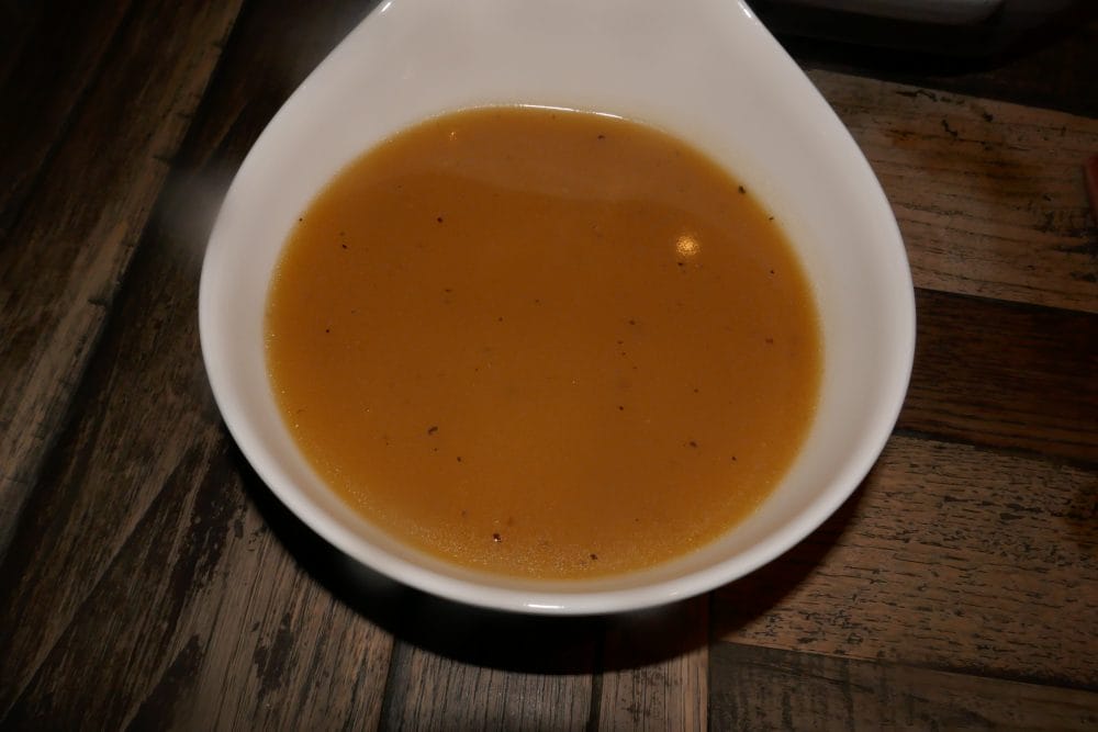 Fres løk og epler i smøret til løken er blank, men ikke brun. Tilsett eplejuice, konjakk og laurbærblad og la det koke i 30 min. Sil av løken og eplene, hell sausen tilbake i kjelen og smak til med pepper og kyllngfond, til sausen er passe salt. Kok opp og tilsett maisennajevner, til sausen er passe tykk.