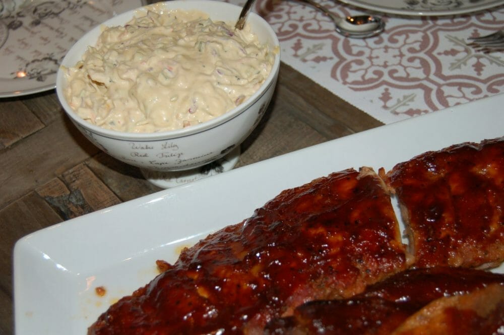 Spareribs med coleslaw og båtpoteter er en deilig matrett fra USA. Den ferdigmarinerte spareribsen du får kjøpt er alt for salt etter min smak. I tillegg synes jeg ikke den er mør nok, så jeg har funnet min egen metode for å gjøre den bedre.