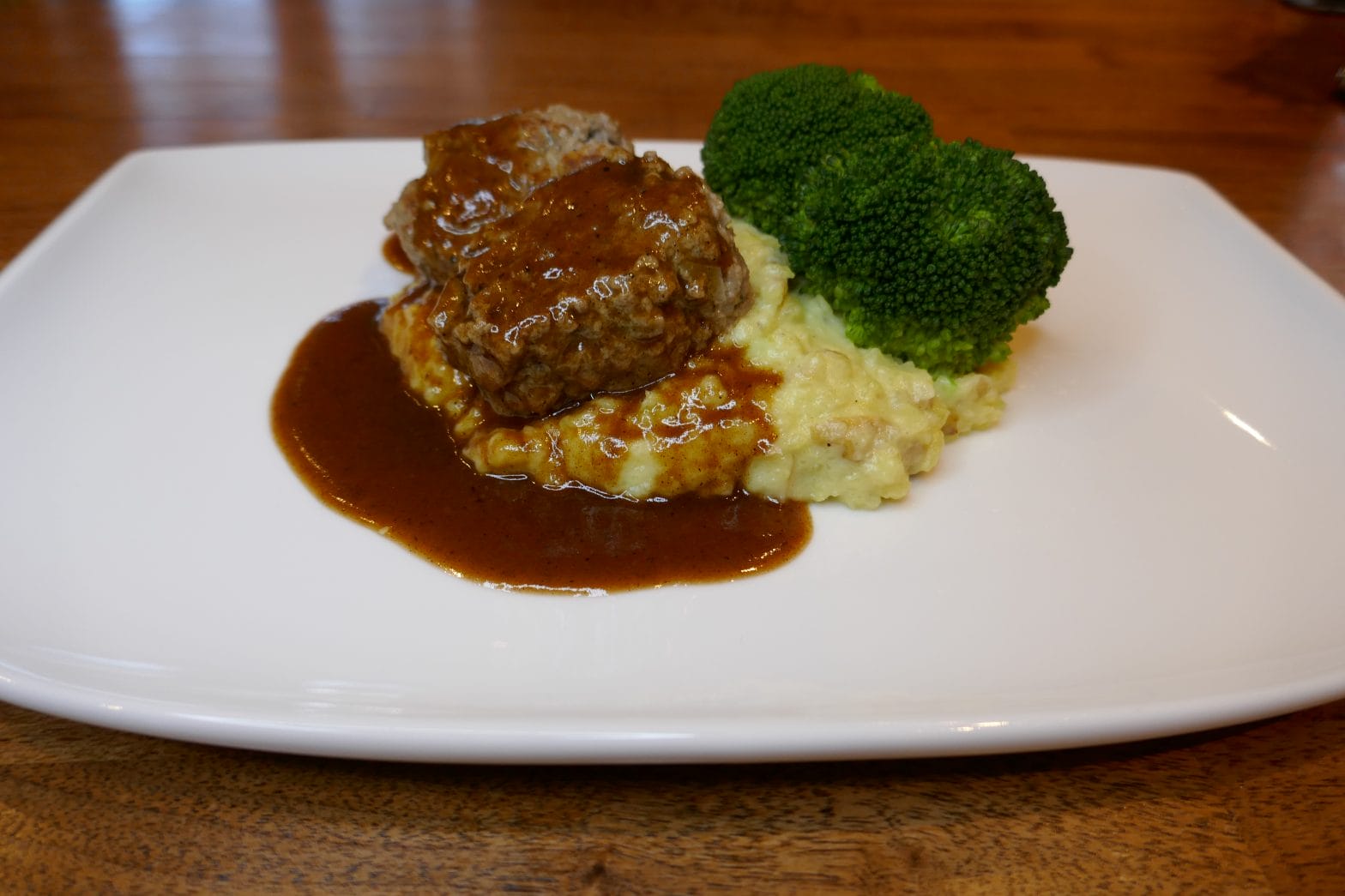 Frikadeller med potetpuré og brun saus er deilig søndagsmiddag. Frikadeller en en dansk spesialitet, som kan minne om norske kjøttkaker. Tilbehøret kan varieres og her er en variant med potetmos.