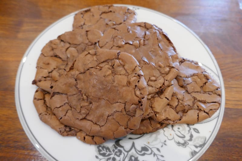 Smelt 200 g sjokolade og smør over vannbad. Visp egg, sukker og vaniljeekstrakt i 15 minutter. Tilsett siktet hvetemel, bakepulver, salt og resten av sjokoladen og bland alt godt sammen. La røra hvile i romtemperatur i 10 minutter slik at den blir litt fastere. Sett røra på et bakepapirkledd stekebrett med en spiseskje. Sett dem med litt avstand, for de flyter litt ut ved steking. Stek dem i cirka 8-10 minutter på 180° grader. Avkjøles på stekebrettet noen minutter før du avkjøler dem videre på rist.