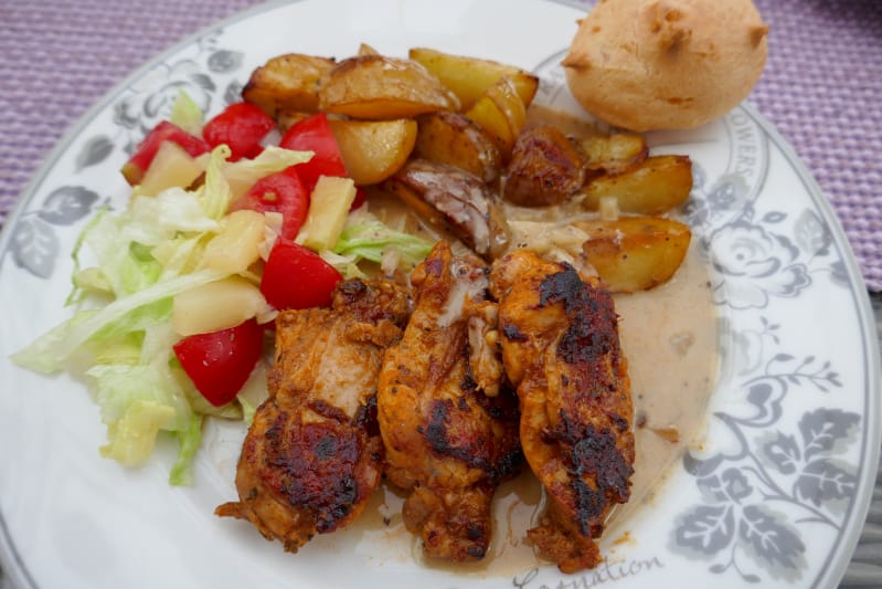 Server gjerne brasiliansk kylling med båtpoteter og brasiliansk ostebrød til.