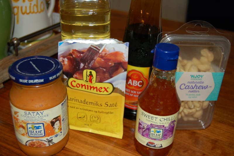 Thaipizza er en av de mest populære oppskriftene på bloggen. Jeg serverer nesten alltid thaipizza til broren min, når han kommer på besøk også, for den er nok en av favorittene hans. Jeg lager pizzabunn på vanlig måte. Du finner oppskrift på pizzabunn her.Når den står og hever, startet jeg på fyllet: 3 kyllingfileter 1 pose conimex marinademiks saté 1 finhakket chili 3 ss ketjap manis 5 ss rapsolje 1 strimlet rødløk 1 strimlet paprika 1/2 glass sataysaus 1 pk reven ost 1 boks ananasbiter Sweet chili dipping sauce 1 pose cashewnøtter Frisk koriander Limebåter Skjær kyllingen i tynne strimler og legg den i en marinade av marinademiks saté, ketjap manis og rapsolje. Kjevle ut pizzabunnen, la den heve, for så å forsteke noen minutter i ovnen. Ta den ut når den har fått litt farge, smør på sataysaus, legg på reven ost, rødløk, paprika, ananas og kyllingstrimlene. Om du liker det litt sterkt, kan du også legge på finhakket chili. Strø over cashewnøtter på toppen. Thaipizza stekes i ovnen, på 300 grader, til den får fin farge. Risle over sweet chilisaus og legg på blader av koriander og limebåter før servering. Du finner flere spennende pizzavarianter her. Om du vil abonnere på nyheter fra bloggen, kan du melde deg på ved å sende oss e-postadressen din her. Nyhetsbrevet er helt gratis. Du kan også følge bloggen på Facebook.
