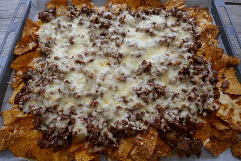 Gratinerte tortillachips er enkelt å lage til mange, siden du brer tortillaene utover stekebrettet, legger fyllet oppa, ost på toppen og gratinerer i ovnen.