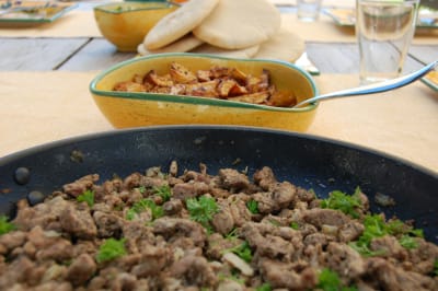I sous vide: Vi har vakuumert kjøttet med timian, olje, pepper og laurbærblader og lagt det i sous viden i 2 timer på 56 grader. Deretter har det fått noen minutter på grillen, slik at det har fått fin stekeskorpe og perfekt kjernetemperatur.