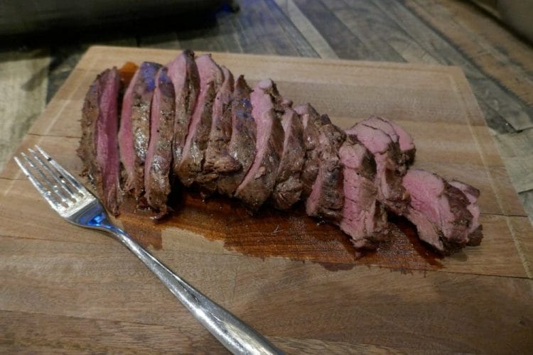 I stekeovn: Om du ikke har sous vide, kan du brune kjøttet i varm stekepanne med olje for å lukke porene. Legge det over i et ildfast form og steke elgfileten i ovnen på 180 grader i 15 min. Ta ut og hvil i minimum 15 min. Sett kjøttet inn i stekeovnen igjen på 90 grader og stek til kjøttet har en kjernetemperatur på 61 grader.