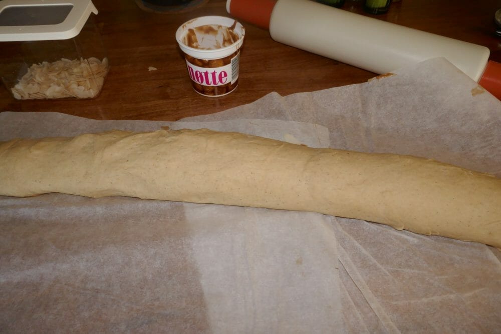 Elt alt godt sammen og la den heve. Deigen er perfekt, når den er så fuktig at du akkurat klarer å kjevle eller trykke den ut, så tilsett nok vann, ev. juster med mel.