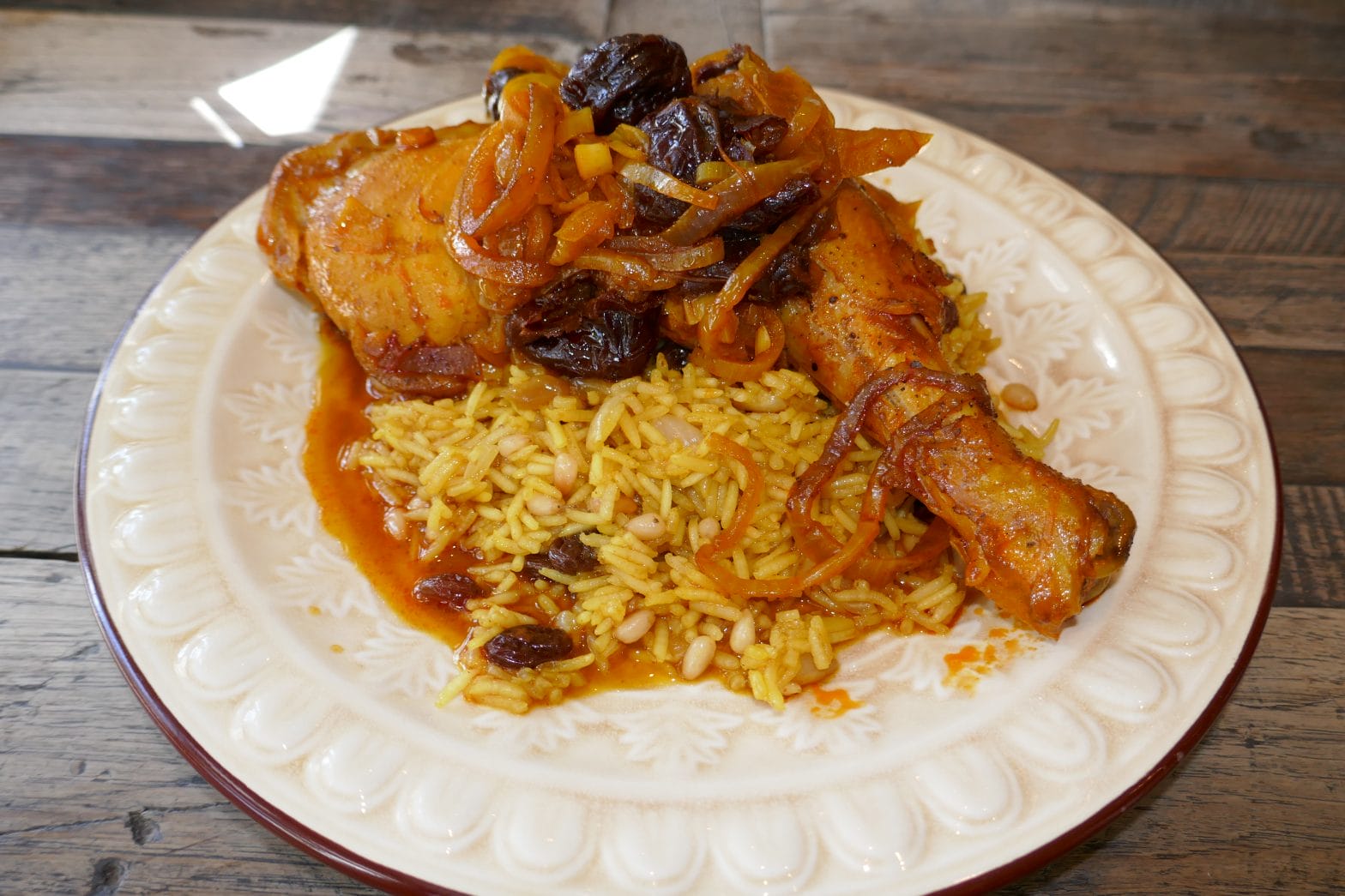 Hvis sausen er veldig flytende, fjern kylling, svisker og løk og hold det varmt mens du reduserer sausen, slik at du har igjen en liten mengde til hver porsjon.