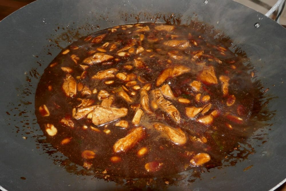 Kylling gong bao er en nydelig kinesisk rett med en smaksrik saus og peanøtter. Kylling gong bao er rask å lage, alle ingrediensene til sausen blandes i et litermål og helles over kyllingen rett før servering.