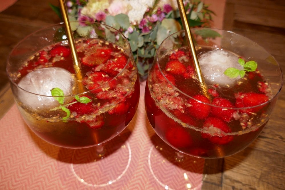 Pink gin rose lemonade med bringebær