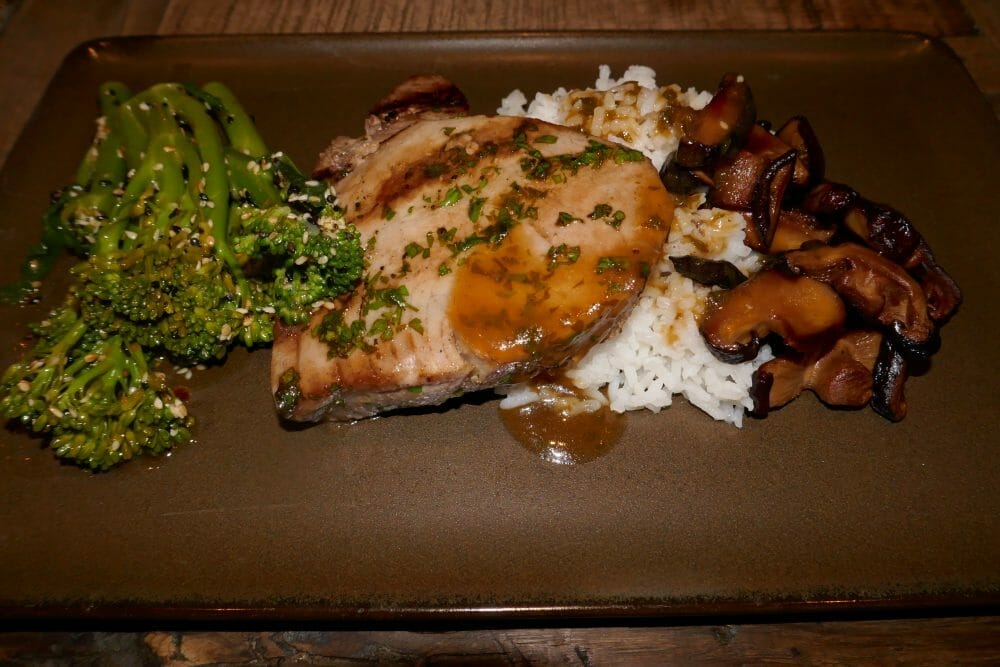 Svinenakkespyd med japansk ketsjup og papayasalat