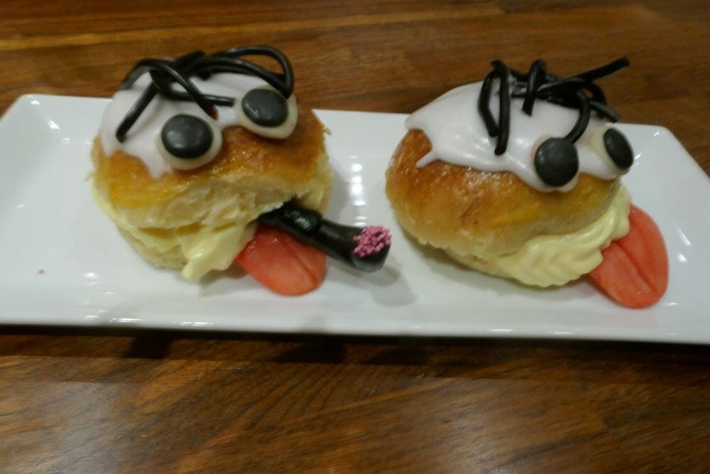 Denne varianten er med vaniljekrem, lakrispipe, marsipantunger, melis, nonstopøyne og lakrislissehår.