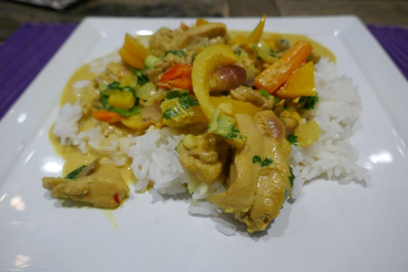 Karrikylling er inspirert av smakene i Sør-Øst Asia og er ganske kjapt å lage. Jeg liker å bruke lårfilet, men du kan gjerne bruke brystfilet i stedet.