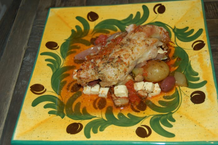 Kje på gresk vis er møre, saftige kjelår, som får kose seg på en seng av grønnsaker og en tomatbasert saus. Kje er ikke alltid så lett å få tak i, men om du spør på Meny, kan de ofte skaffe. Kjeet, som egentlig kommer fra slakter Eide i Lillesand, marineres over natten i en nydelig hvitløk- og urteblanding, og kan varieres ved å velge forskjellig tilbehør. Kjelår er ganske små, så det er greit å beregne 2 personer pr. lår.
