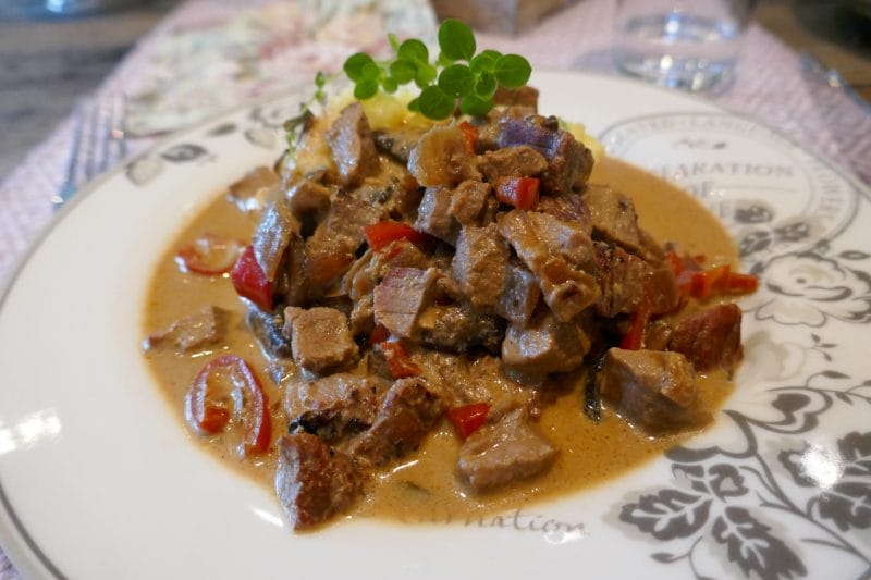 - Helstekt kalvefilet med røstipoteter og blåskimmelsaus