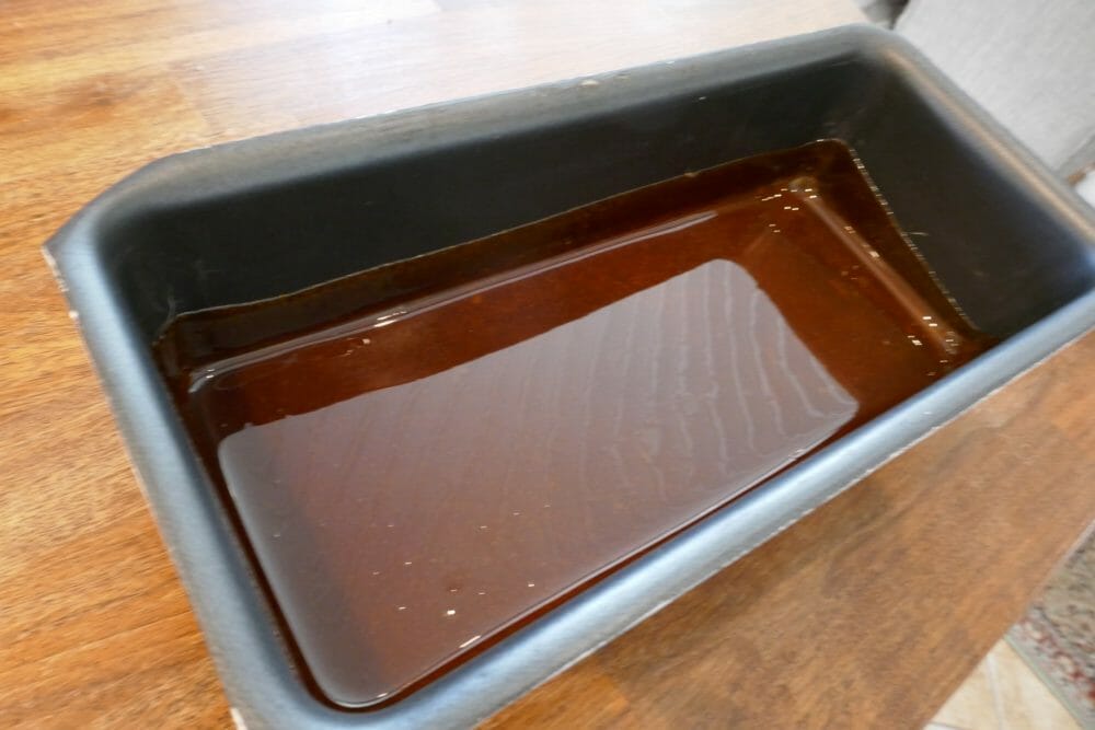 Smelt sukker til karamell i en stekepanne over middels høy varme. Pass på at det ikke blir brent. Hell karamellen over i en ildfast brødform og la den avkjøle seg.