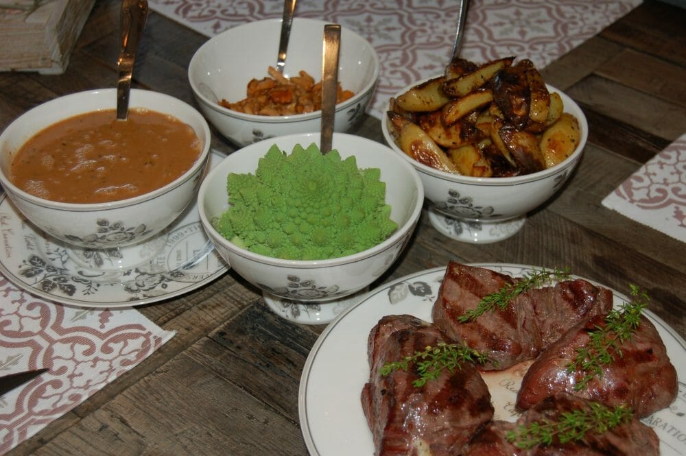 Reinsdyrbiff med viltsaus, båtpoteter, kantareller og romanesco