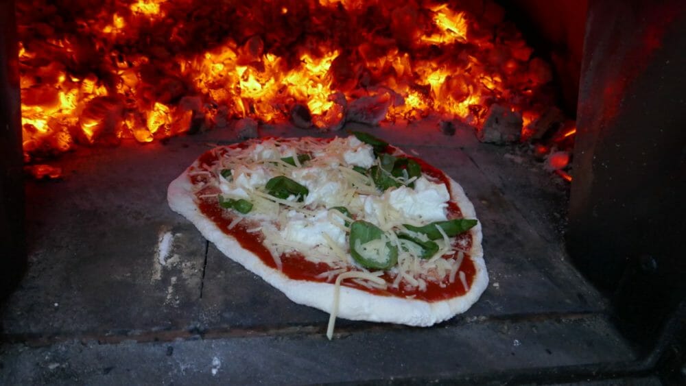 Når jeg lager pizza, lar jeg deigen kose seg i lang tid, gjerne i kjøleskapet natten over. Jeg tar den ut ca. 1 time før jeg skal bruke den og lar den heve seg ferdig på benken, før jeg trykker/kjevler den ut og lar den etterheve i ca. 30 minutter. For italiensk pizza, kjevles den veldig tynn og for pizza med amerikansk bunn litt tykkere. Om du lager pizzadeigen samme dag, som du skal bruke den, kan den få stå på benken og heve i minimum 1 time. Jeg steker alltid bunnen på høy temperatur i noen få minutter, før jeg legger på fyllet.