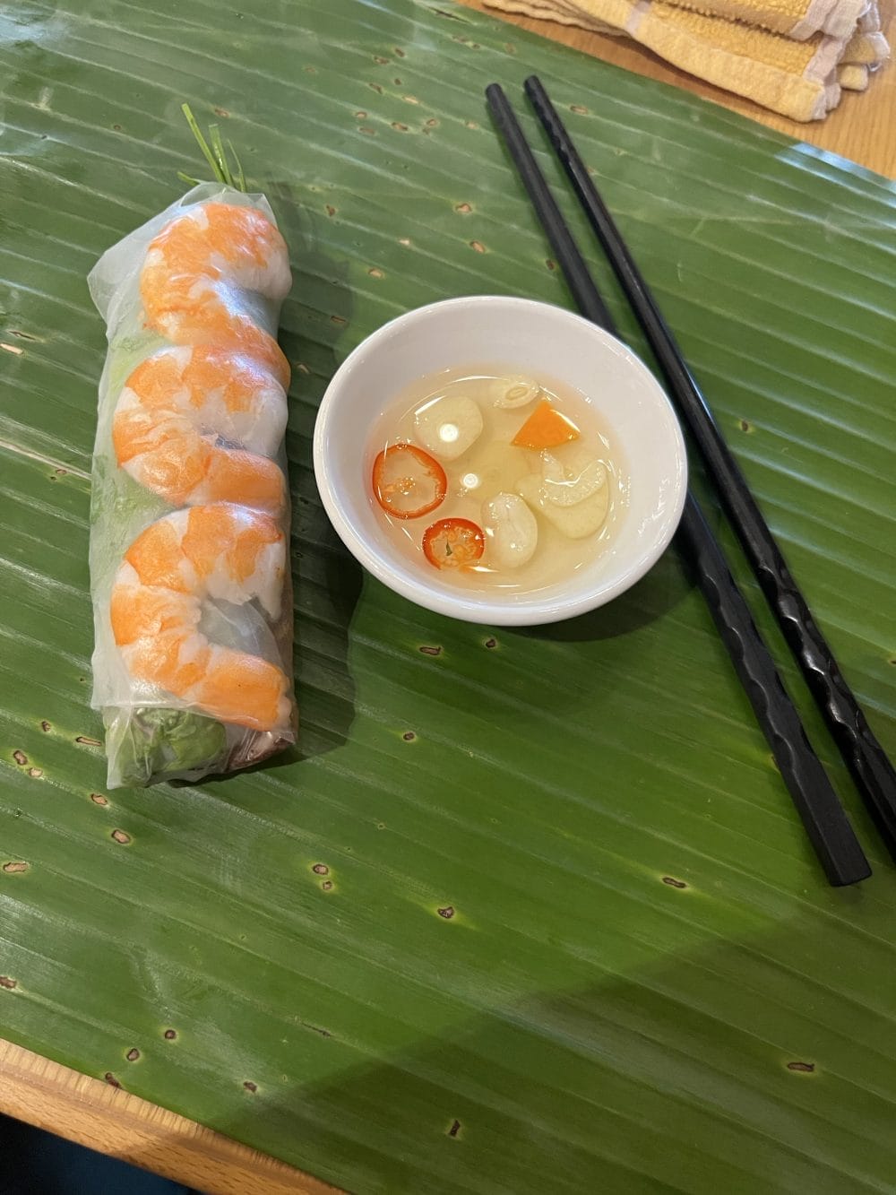 Den første retten vi fikk lage, var sommerruller og selv om jeg har laget det før, lærte jeg flere smarte triks, for at de skulle se perfekte ut.